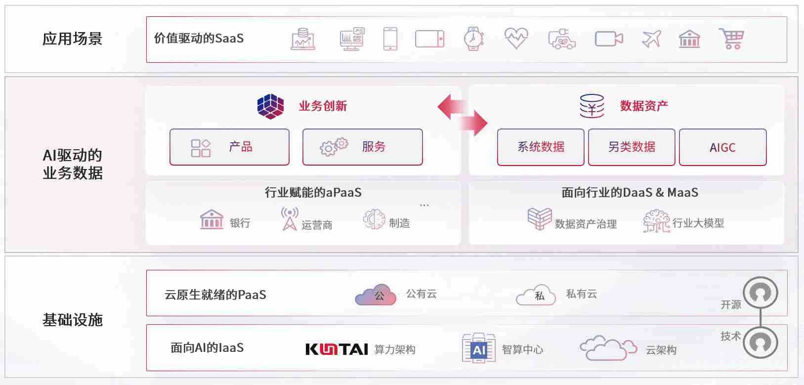 数字时代,,围绕企业数字化转型的关键要素,,,竞技联盟德州数码开创性的提出数云融合战略和技术体系框架,,着力在云原生、、、数字原生、、、AI原生和信创产业上架构产品和服务能力,,为处在不同数字化转型阶段的快消零售、、、汽车、、、、金融、、、医疗、、、、政企、、教育、、、运营商等行业客户提供泛在的敏捷IT能力和融合的数据驱动能力,,,构建跨界融合创新的数字业务场景和新业务模式,,,,助力企业级客户建立面向未来的核心能力和竞争优势,,,全面推动社会的数字化、、智能化转型升级。。