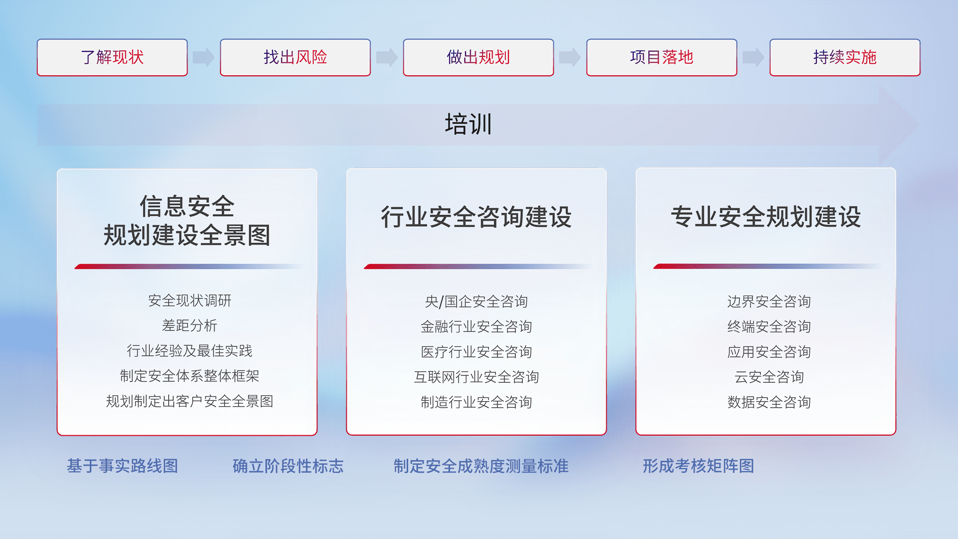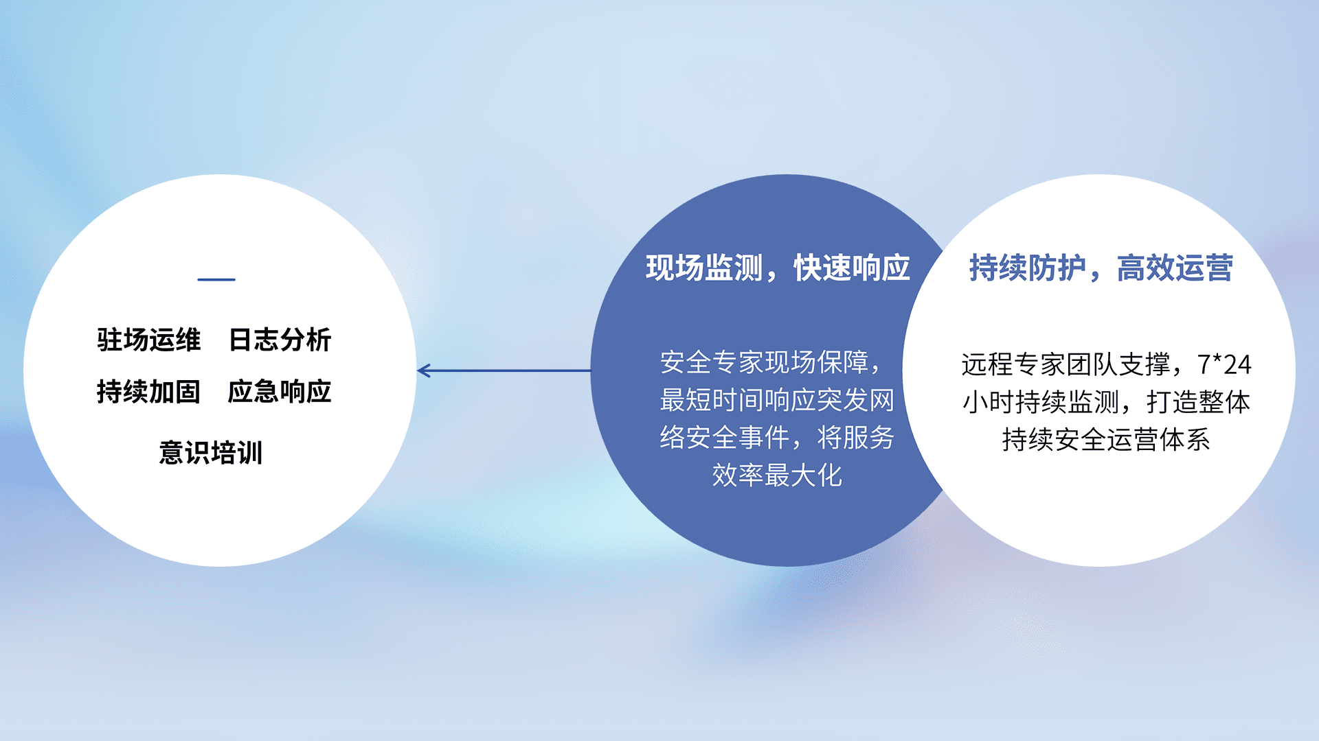 针对客户行业特性,,,提供专属的一站式安全管理服务,,帮助客户全面感知网络空间威胁,,通过安全专家的线上、、、、线下防护支持,,,实现风险闭环,,,将安全保障常态化,,,,为客户打造常态化安全运维运营服务。。。